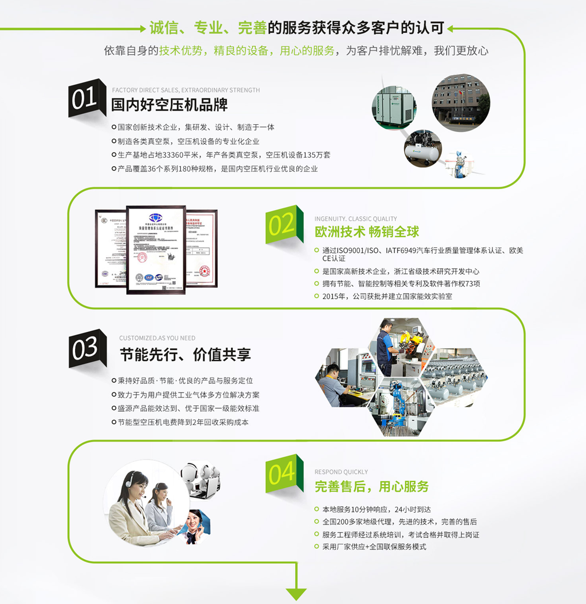 浙江盛源空壓機(jī)制造有限公司是一家研究制造無油真空泵系列、新能源電動空壓機(jī)、空氣壓縮機(jī)設(shè)備、器材、永磁伺服電機(jī)、工業(yè)投資等多元化經(jīng)營的大型企業(yè),是國家高新技術(shù)企業(yè),浙江省級技術(shù)研究開發(fā)中心。